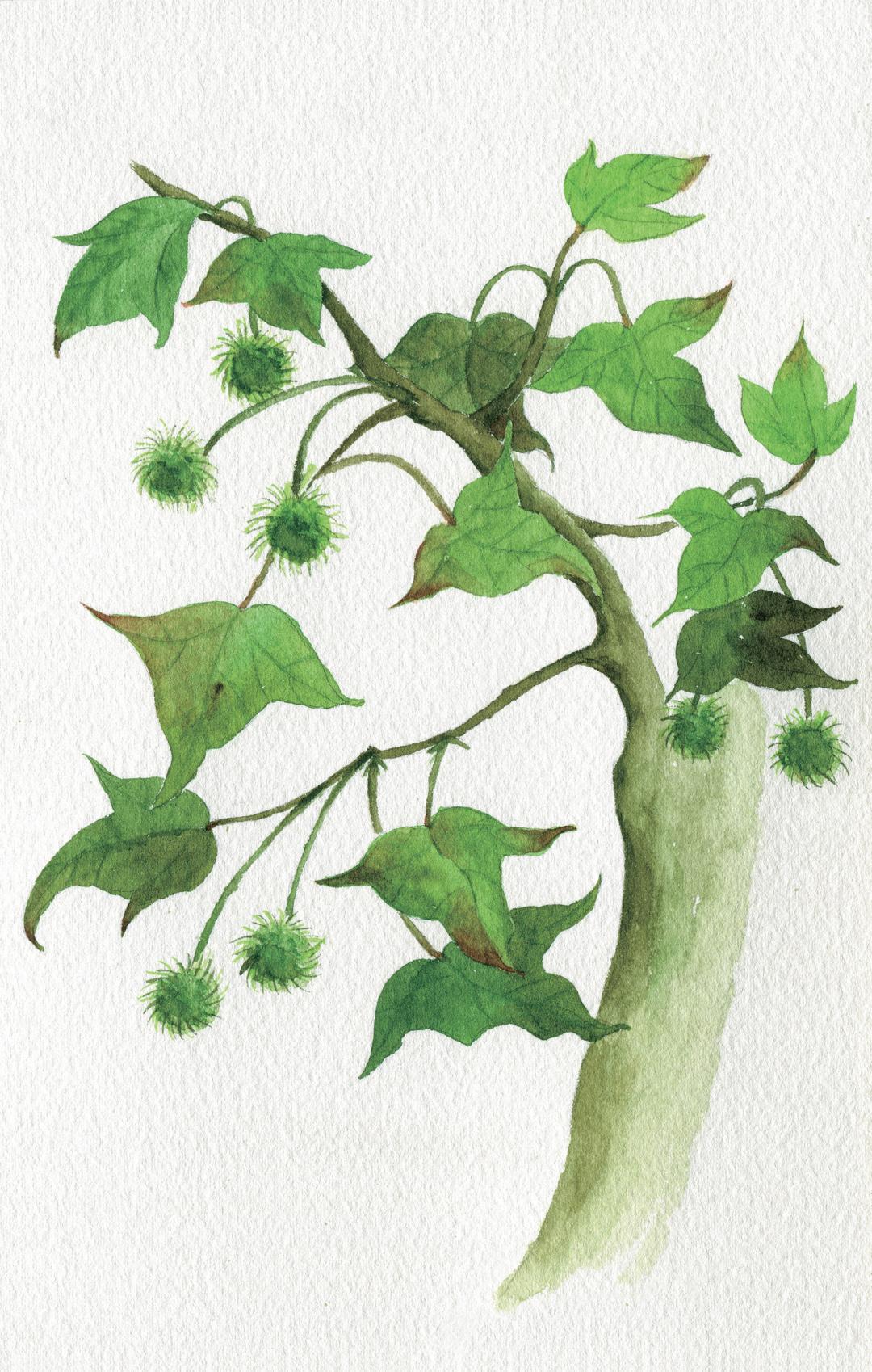 枫香,树干像白杨,叶片较圆有分叉,有树脂而且带有香味。