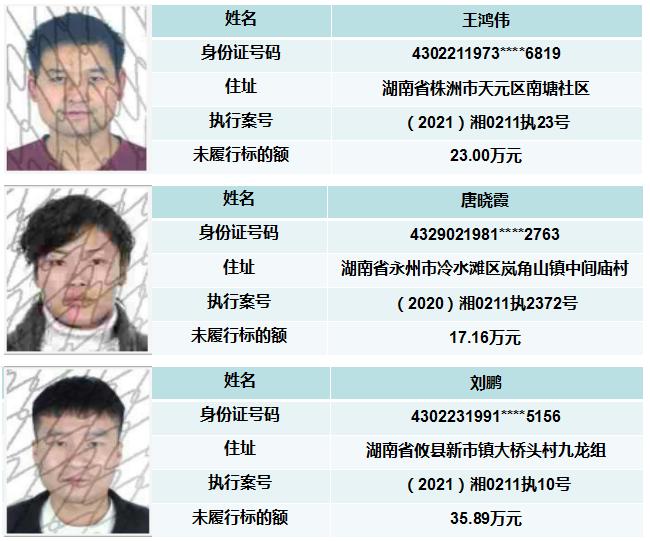 原标题:《天元区法院公布失信被执行人名单(2021年第四期)》