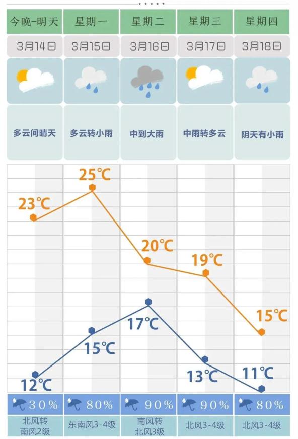 周一高温将冲高到25℃