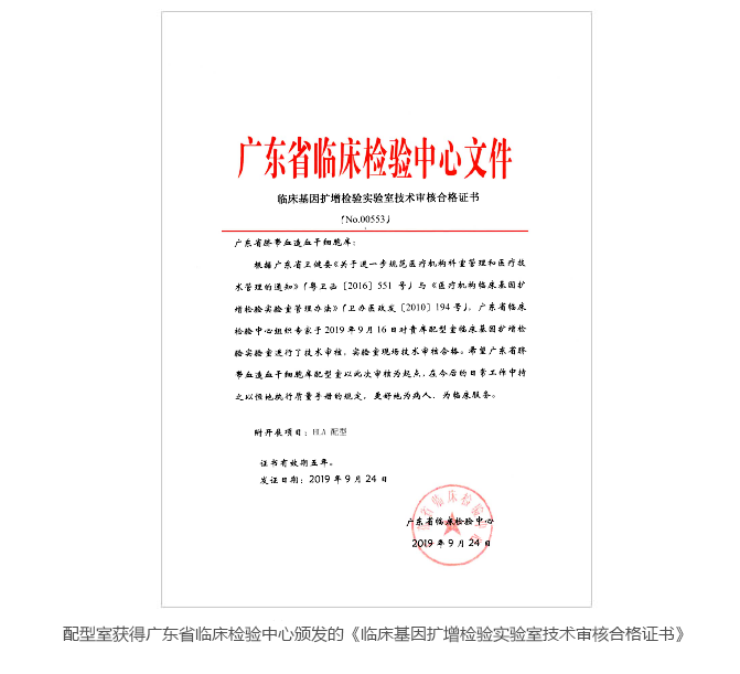 2009年至2014年均获得由卫生部临床检验中心颁发的全国人类白细胞抗原(HLA)基因分型室间质量合格证书。