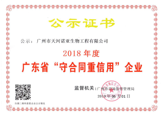 截止至2019年 连续9年被评为“广东省守合同重信用企业”