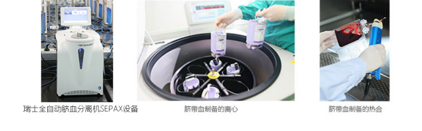 脐血库引进瑞士全自动脐血分离机SEPAX设备,使脐带血在全封闭状态下,自动完成离心与分离的制备程序,在提高细胞回收率的同时,更大程度的保证血液制品的安全,使脐带血的制备水平符合国家标准,并向国际标准(即AABB标准)看齐。