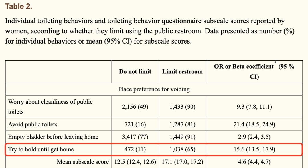 而这样的因为担心带来的「不敢用」,除了不方便外,还可能影响女性健康——因长时间憋尿带来更多下尿路问题。