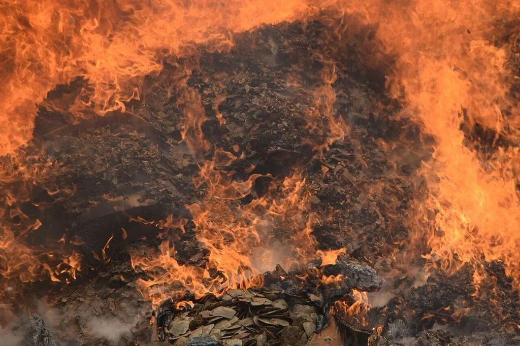 2017年,喀麦隆焚毁了3吨非法交易的穿山甲鳞甲。图片:U.S. Fish and Wildlife Service Headquarters / Wikimedia Commons