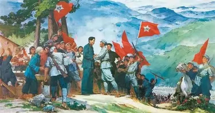 1928年4月28日,几经辗转,两支队伍在宁冈砻市胜利会师。两位共产党人的手,紧紧握在一起,久久没有松开。
