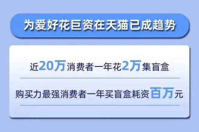 目前,有接近20万的消费者在盲盒上花费超过2万元,甚至有的硬核玩家一年豪掷百万。