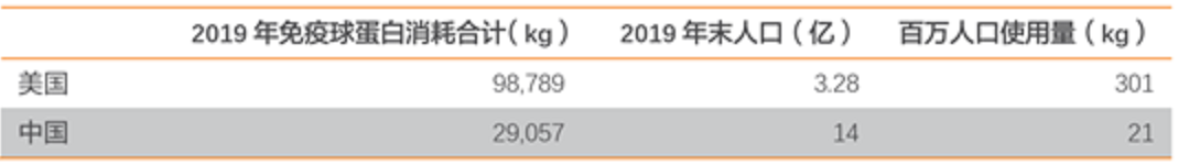 表二:中美免疫球蛋白使用量对比