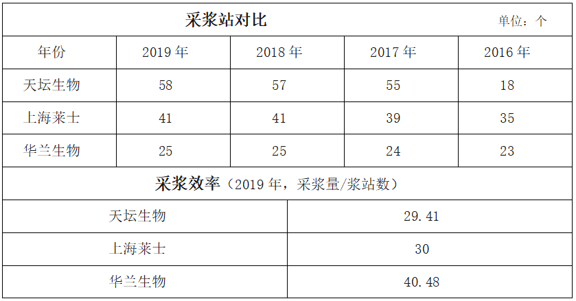 表三:主要血液制品行业浆站数量及采浆效率