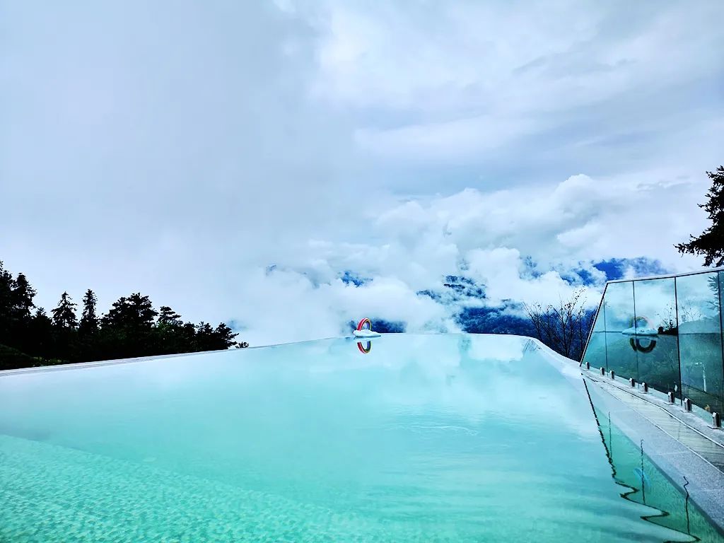 最吸引探访组的莫过于星空泳池了,它位于餐厅门前广场西侧的一处屋顶上,全露天设计,150平方米左右,同时设置了深水区和浅水区。倘若在夏日夜晚在这里游泳,抬头可见浩瀚星空,侧耳能闻林海涛声,一定会令人终身难忘。