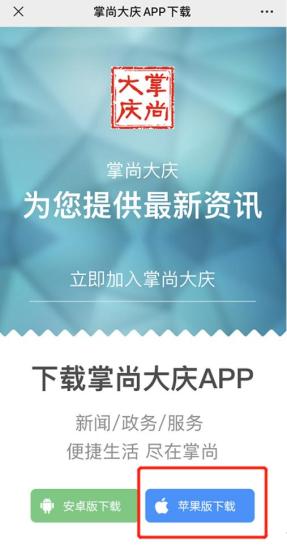 或在苹果APP STORE搜索“掌尚大庆”,点击“苹果版下载”。