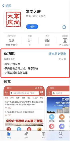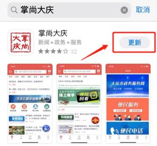 2.已安装“掌尚大庆”的用户,可在苹果APP STORE搜索“掌尚大庆”,点击“更新”,更新完毕后即可正常使用。