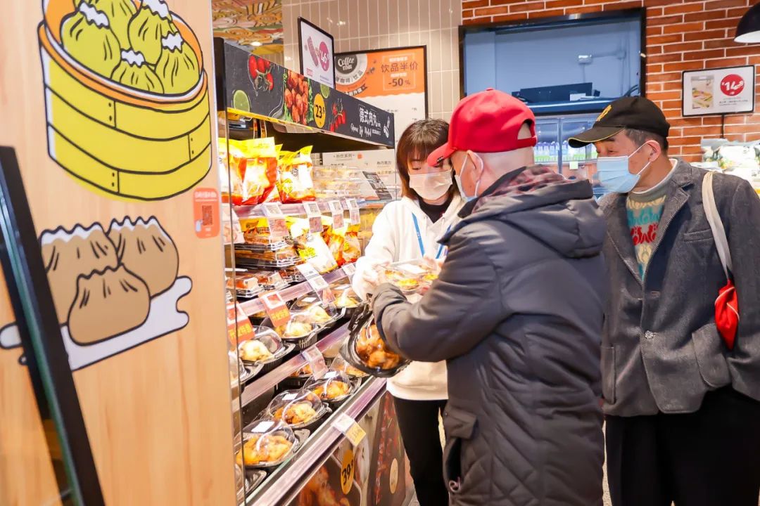 除了“西式”的葡萄酒、披萨、意大利面等商品外,店内也有不少贴合“老上海”人胃口的食品,比如红肠、馄炖、鲜肉大包等,受到阿姨爷叔们的欢迎。