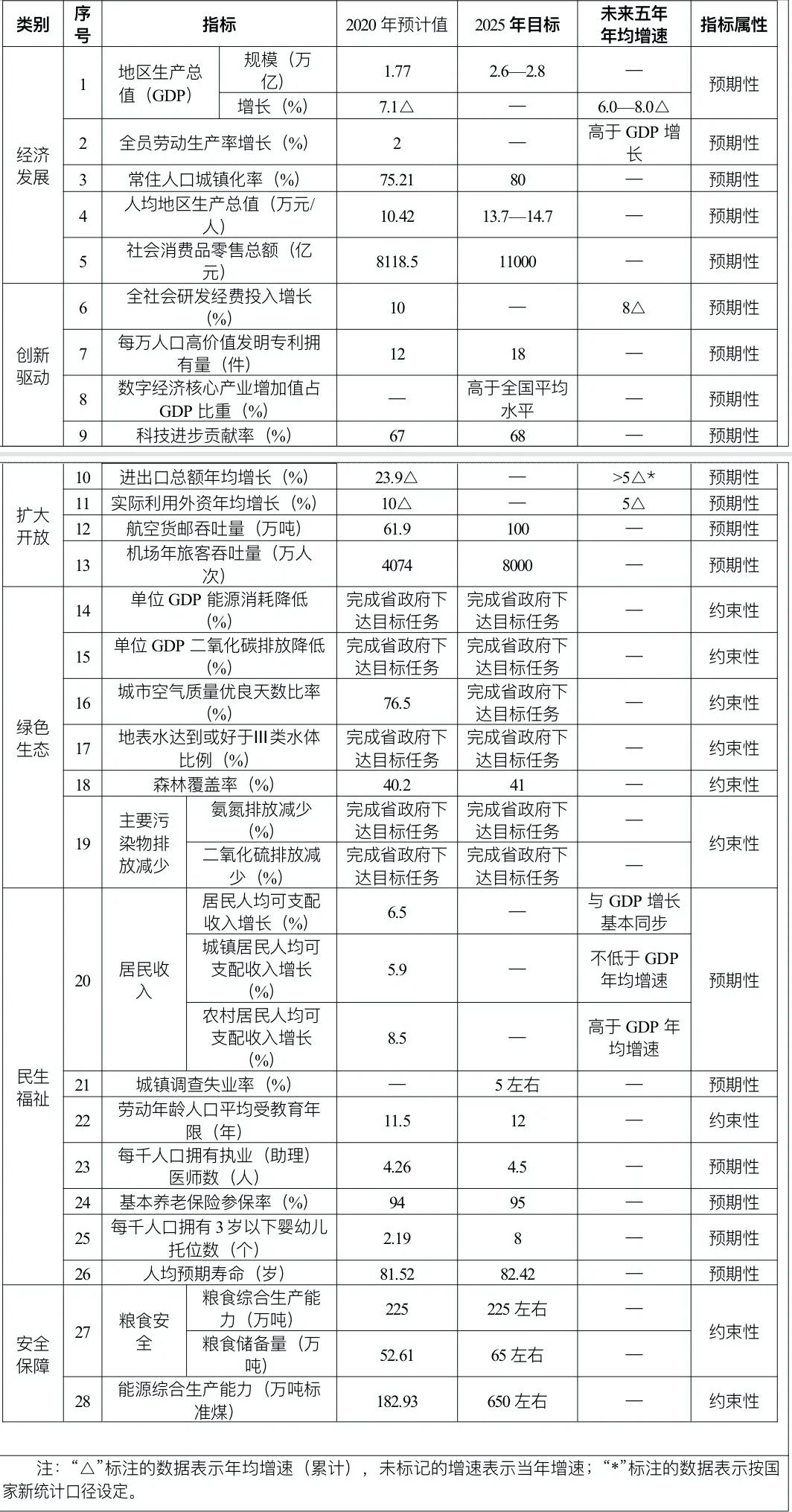 “十四五”时期经济社会发展主要指标