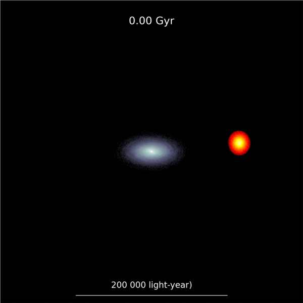 当矮星系被银河系的引力捕获后,会被银河系吞食。但矮星系并不是被银河系一口吞下,整个过程要历时几十亿年的时间。期间,矮星系内的恒星被银河系的潮汐力剥离出来,并慢慢融入银河系。