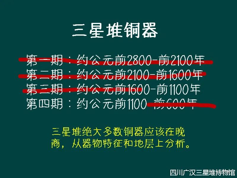 众所周知,三星堆的绝大多数青铜器出土于两个器物坑,这两个坑的时间目前一般认为是在三星堆遗址的三期偏晚或三、四期之交,相当于中原商王朝的晚期阶段。根据地层和器物特征分析,坑内器物也应该同时或稍稍偏早,仍应该归入晚商。而我们知道,中原早在二里头时代就出现了青铜礼器,比三星堆早了四五百年。