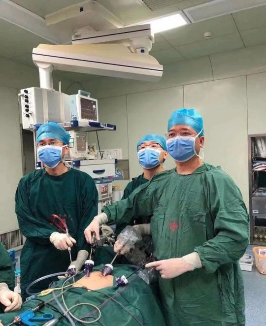 傅斌主任与刘伟鹏副主任医师利用超高清腹腔镜进行腹腔镜微创手术
