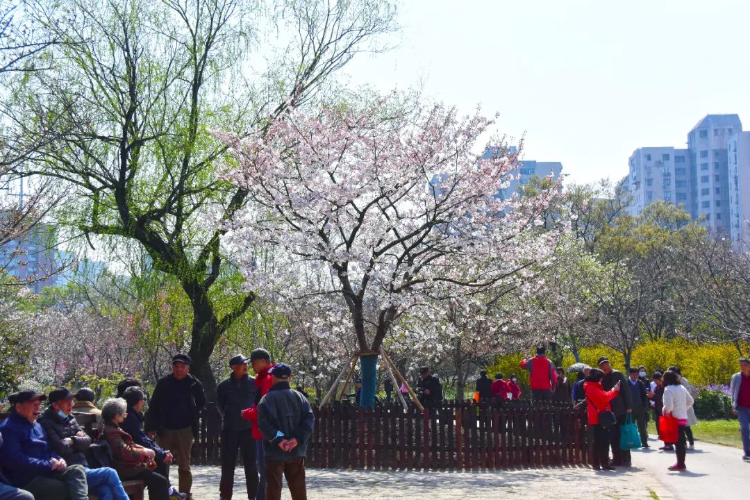 在园内的中日樱花林中,不仅栽植有为纪念七十年代上海与日本横滨市结为友好城市的樱花,也新加入了十几株从北区而来的“伙伴”,进一步扩大了春日的赏樱风貌。