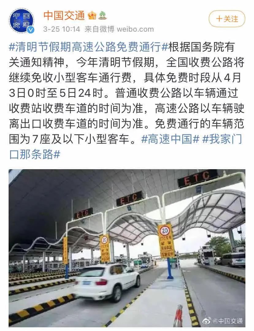 今年清明节假期,全国收费公路