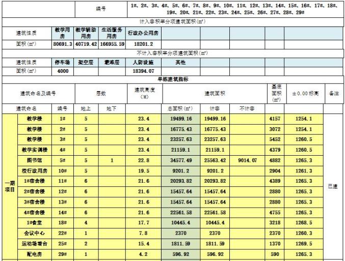 贵州商学院白云新校区二期工程项目在2019年7月通贵阳市自然资源和规划局审批,并取得《建设工程规划许可证》。原规划总图中二期未建设项目共15个单体子项,总建筑面积115497m2,其中计容建筑面积102117m2,不计容建筑面积13380m2。