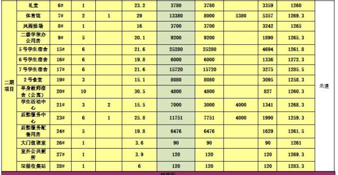 现对各建筑单体施工图面积进行调整。5号学生宿舍增加280m2,相应7号学生宿舍扣减280m2;礼堂、二级学院办公用房增加的设备用房面积524m2,相应后勤服务配套用房扣减524m2;2号食堂增加280m2,相应后勤服务中心扣减280m2。总共增加面积804m2,同时扣减相应面积也为804m2,二者相平衡,原总面积不变。