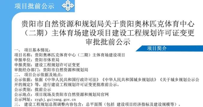 1月5日,据贵阳市自然资源和规划局公示,贵阳奥林匹克体育中心(二期)主体育场建设项目规划方案拟调整,包括景观方案调整、车位数量减少等。