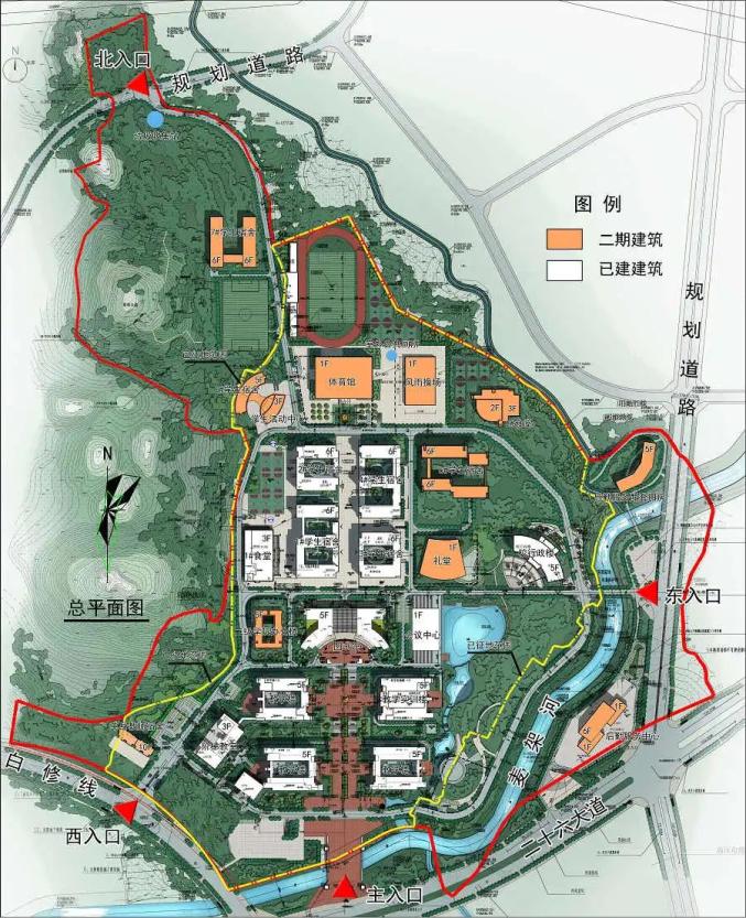 据悉,贵阳市示范性学校(花溪校区)位于花溪区青岩镇。项目投资100000万元,总建筑面积120000平方米的3000人规模全寄宿、走班制高中。包括:教学综合楼、教师公寓、学生公寓、食堂、美术楼、音乐楼、会堂、图书行政综合楼、风雨操场、地下车库、道路和校门等。