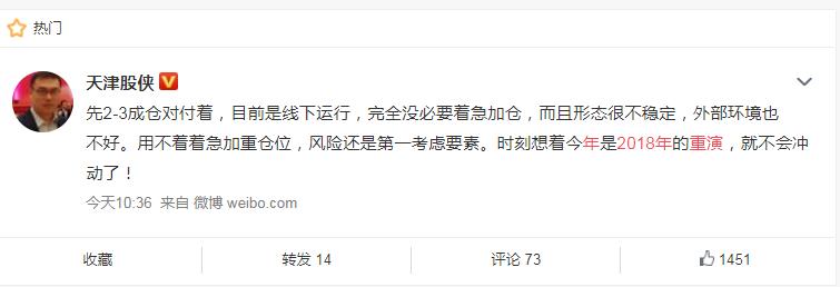 目前有市场人士担心,今年市场会否重演2018年的走势,比如有网红财经大就因此建议控制仓位2到3成。
