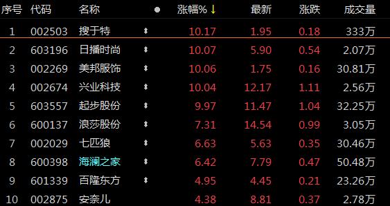 纺织服装涨停潮