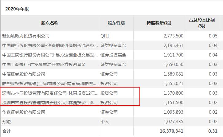 而近日公布的2020年年报显示,有中国“民间股神”之称的投资大佬林园两只产品去年四季度赫然现身该股。