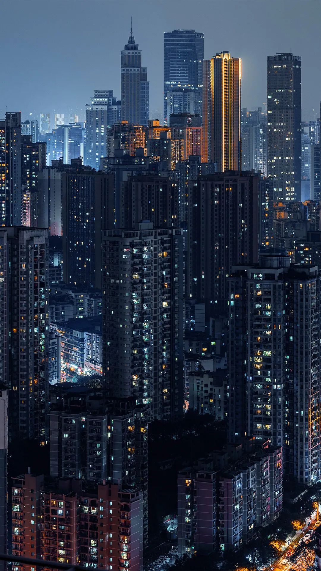 夜渐渐深了,喧哗的城市慢慢宁静下来,密集的城市建筑群自下而上有如点点星光。