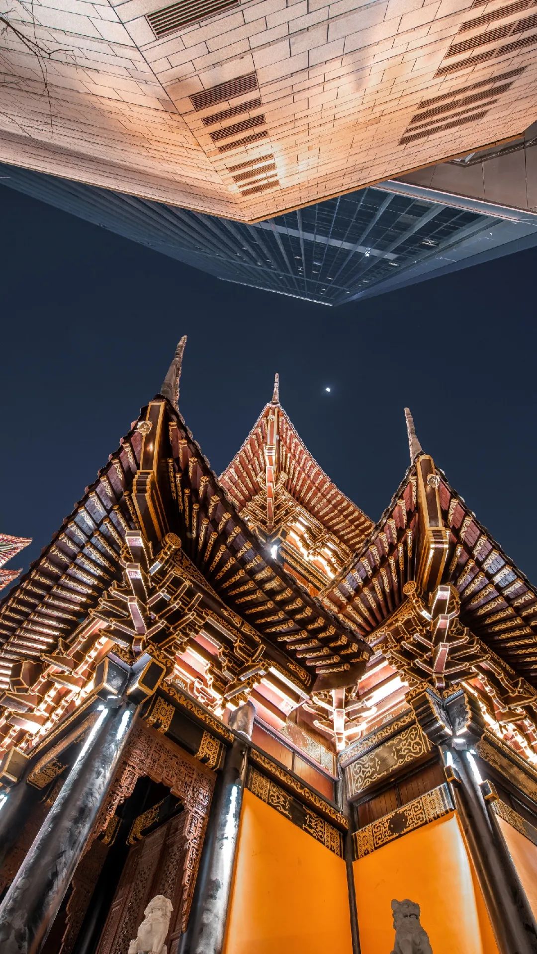 古朴的罗汉寺飞檐与现代建筑的对话,在城市的喧嚣中获取片刻幽静。