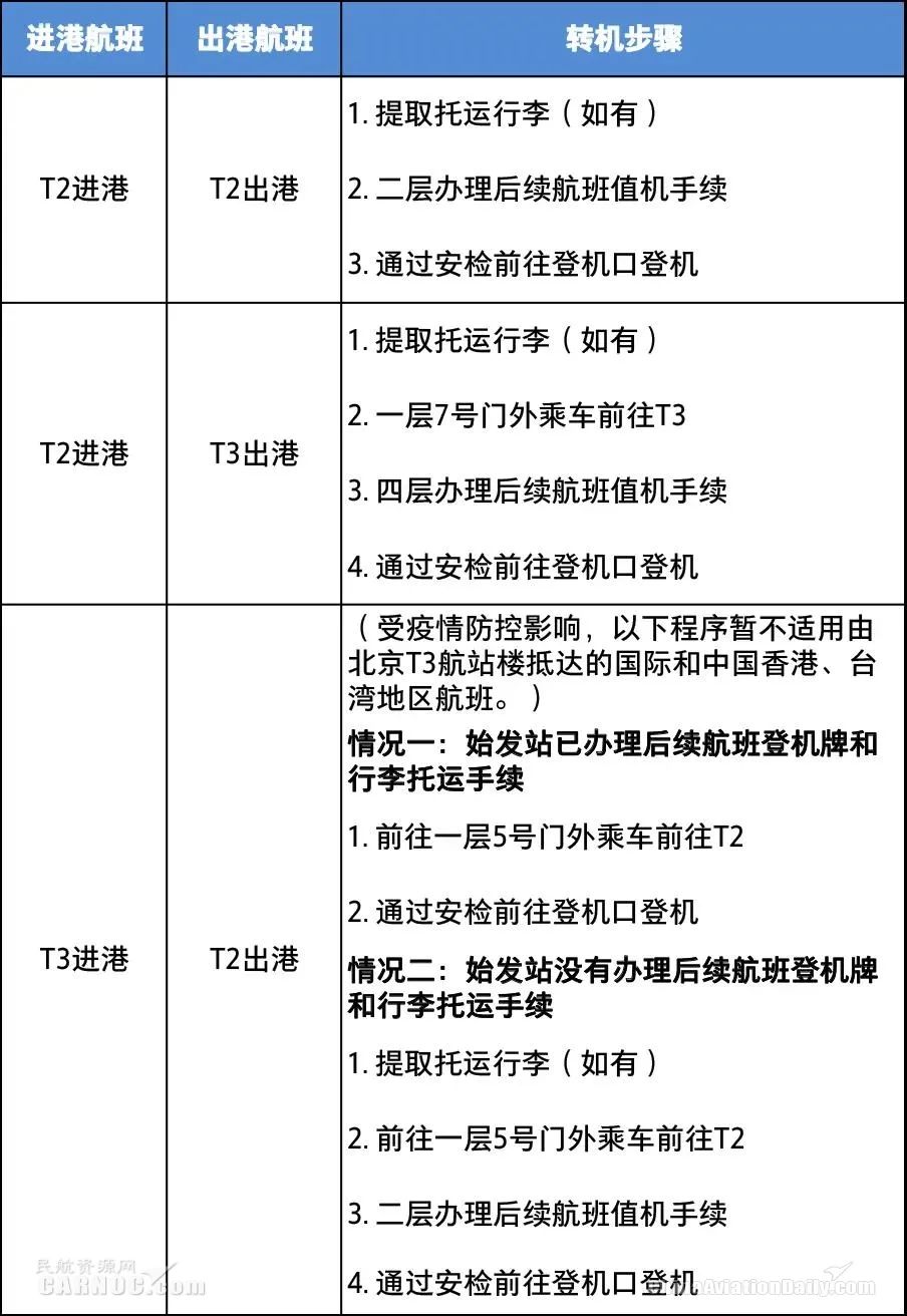 三、涉及北京首都机场T2航站楼的中转流程