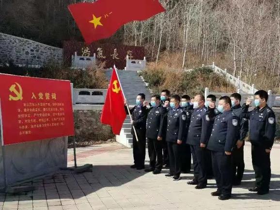 活动最后,全体党员民警面对鲜红的党旗,重温入党誓词。