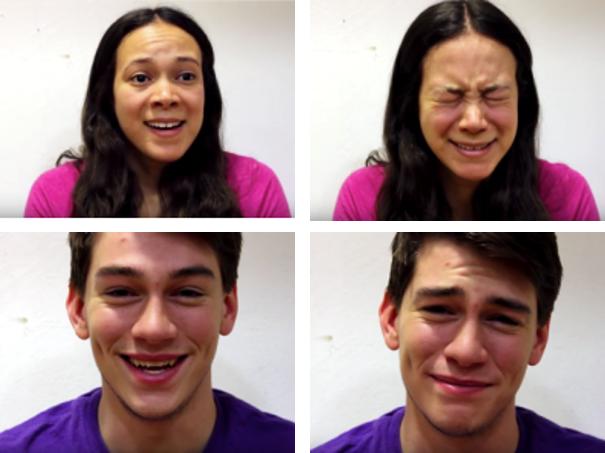 她的研究团队发现,高兴时微笑(单态)和高兴时哭泣(二态),这两种不同的情绪表现方式会影响其他人如何理解我们的情绪。他们邀请了 150 位被试观看职业演员的即兴表演视频:开心地笑或开心地哭。看完后,让被试假定演员是自己的朋友,对自己从视频中感受到的演员的情绪强度打分。