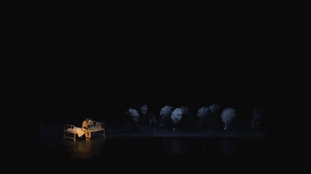 舞剧开场第一幕的时空交叠,堪称“神来之笔”。一边是影影绰绰的病榻上,1948年因胃穿孔在北大医院进行抢救的朱自清,和忙前忙后的医护人员。另一边是在先生仙逝后,来参加他葬礼、哀悼的人们。