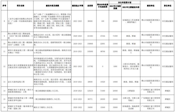 其中,今年将动工建设佛山城市轨道交通四号线一期、佛山市城市轨道交通十一号线、佛山市城市轨道交通二号线二期,加快建设佛山市城市轨道交通二号线一期、广州市轨道交通7号线一期工程西延顺德段、佛山市城市轨道交通三号线。