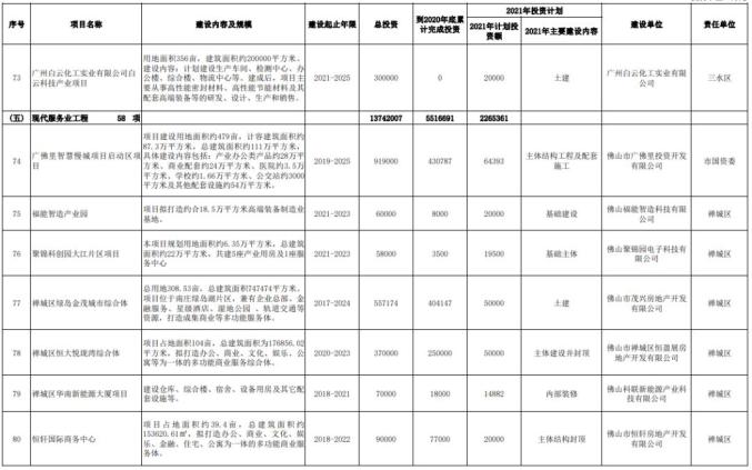 现代服务业工程是佛山市重点建设项目的关键一环。今年,佛山将重点推进佛山市龙江智慧家居小镇、南海平谦国际智慧产业园等项目加快建设。在预备项目中,将推动腾讯工业互联网粤港澳大湾区基地、宜家供应链华南区贸易中心项目落地建设。