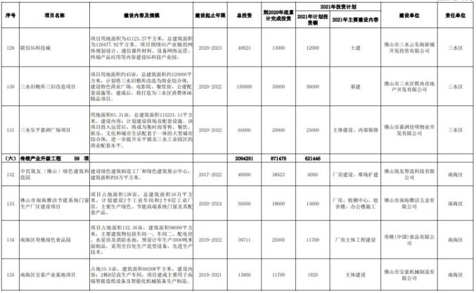 这些项目涉及产业工程、基础设施建设、民生工程等领域。佛山作为全国制造业大市,产业项目占比最大,集中开工投产产业项目共有194个,年度计划投资超339亿元,重在推动传统产业转型升级、新兴产业加快培育,加快推动制造业迈向中高端。同时还安排了48个基础设施项目、60个民生项目集中开工投产,进一步补齐城市建设短板,增强市民幸福感获得感。