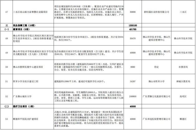 民生保障工程中,一方面推动教育高质量发展,新开工建设广州美术学院佛山校区一期校园工程,推动建设东北大学佛山研究生院、南方医科大学顺德校区,做好香港理工大学(佛山)建设项目前期准备工作。