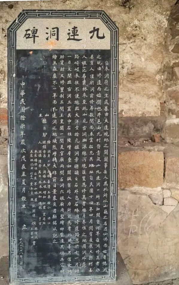 九石洞是一个嵌生在悬崖之上的白云岩溶洞。此洞有9个口,深浅不一、大小不等。主洞口宽10米、高约3米、深30米。据[民国]《井陉县志料》载“洞有二,新一旧一。旧洞已无金石可考,未知何年开辟。洞形奇特,上下四周均系磐礴广大之岩石层叠而成。地颇平适,凹凸尚少。顶多岑峨而参嵯。环顾岩壁岷齶特甚,嶙峋坎坷之处,举目皆是。且三步一窍五步一窦,伛偻而入,均窅冥纡曲,莫能穷其究竟。盖支谷纷岐,幽邃过甚。当地住民恐中有毒虫,故无人敢到底探视。然为状虽不规则,而结构出自天成,特具一种妙趣。且容积宽阔,足有八九间房屋之大”。进得洞里犹如进入迷魂阵一般,若不留神,误入岐途,情急中,管叫你一时间难以找到洞口。洞内虽是幽暗,而近口处阳光可人,较为明朗宽阔。新洞系上世纪20年代发现。开凿虽用人力,而生成实为天然。当初庙主范氏思虑,旧洞位于危崖峭壁之间,距地足有五、六丈之高,下临波涛翻滚的冶河,且沿岸未设石栏保护,唯恐来往行人不慎跌落崖下。故此在洞北数十步处凿岩取石,用以建造石栏。天赐良机,掘石当中,竟意外地劈出了三个椭圆形洞口,其内皆填以黄红砂土。掏尽砂土,其中果系一庞然石洞。容积比旧洞更大,而玲珑奇特,亦非旧洞所可比拟,且有坚硬如石之天然土柱(实为溶岩石柱)遍处森立,直径粗的一米开外,细的亦约二尺有余。有大小不等之哈巆窟窿棋布岩壁。其奇巧天成,实与蜂房无异。新洞挖出,遂在洞口前方建抱厦三间;又在岸边筑玉皇阁一座。阁下砌以石磴,以利往来;后在阁前半山腰处塑灵官像二尊。功成之日开光,演戏三日而贺。前来顶礼膜拜者,日以万计。经此点缀,更增其佳色。较之昔日单纯天然之美者,真不可同日而语。自此,遂名旧洞为“南洞”,新洞为“北洞”,总名“九石洞”。