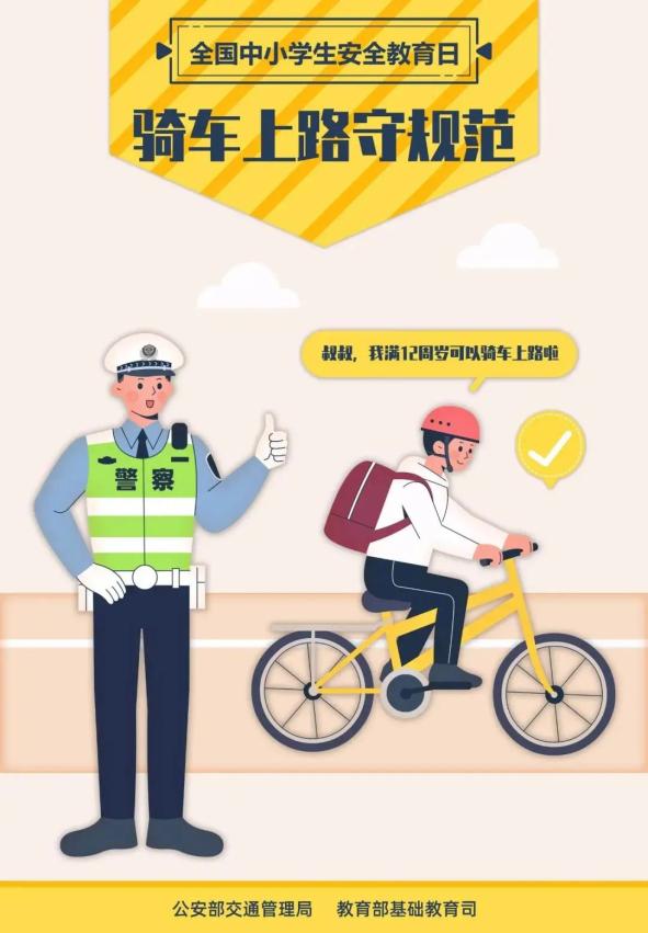 1、学生骑自行车须年满12周岁,骑电动自行车须年满16周岁,并需佩戴安全头盔。。
