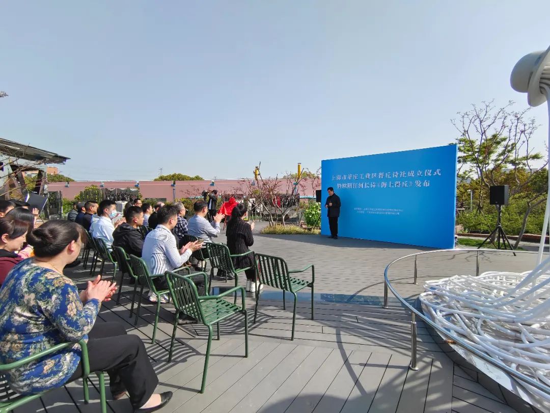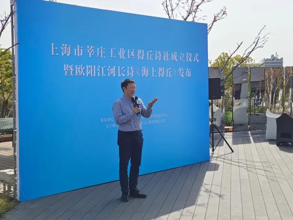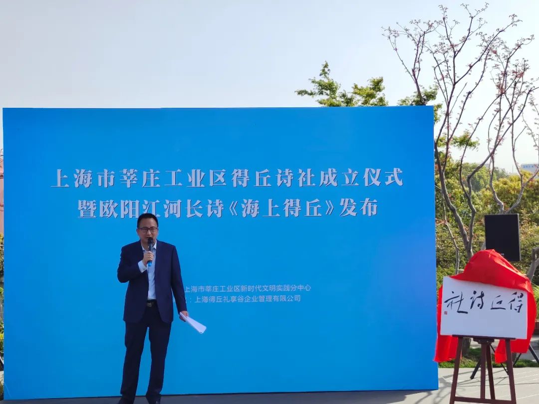 3月28日下午,莘庄工业区得丘诗社成立仪式暨欧阳江河长诗《海上得丘》发布活动在“市民修身行动”市级示范点得丘礼享谷帽子花园举行。