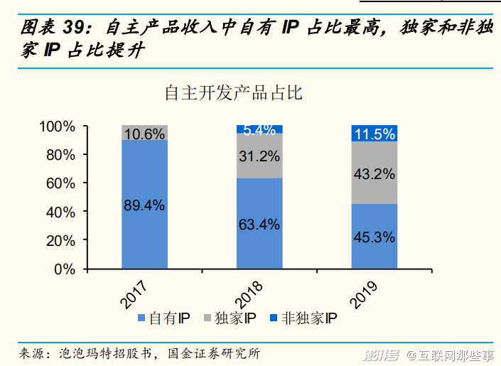 其次,我们可以看到的是,泡泡玛特的财报中自主产品贡献了营收的82.1%,外采和代销仅占17.9%;在自有产品营收之中,自有IP、独家IP和非独家IP分别占总营收的32.7%、35.4%以及9.5%。