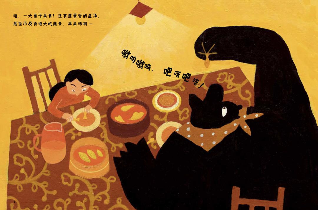 记者:两位的绘本,似乎有在考虑“中国元素”如何呈现这个话题?比如《乌篷船与老花镜》本身就是一个有中国味道的故事,而《楼上的熊》参考了剪纸的风格,可以请两位聊一下中国元素与世界性这个话题。