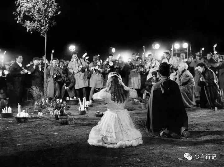 两个儿童声称看见了圣母显灵,整个地区的百姓骚动起来,记者蜂涌而至。每一个镜头都来自记者娴熟的导演,群众说着记者给的台词,聚光灯打亮,一场荒诞戏剧上演了。当一位母亲抱着生病的孩子虔诚地祈祷时,记者却视若无睹收工吃饭去了,大家都在演戏,没有一个人关心真实发生的事情。这一幕是对新闻行业的绝佳讽剌。