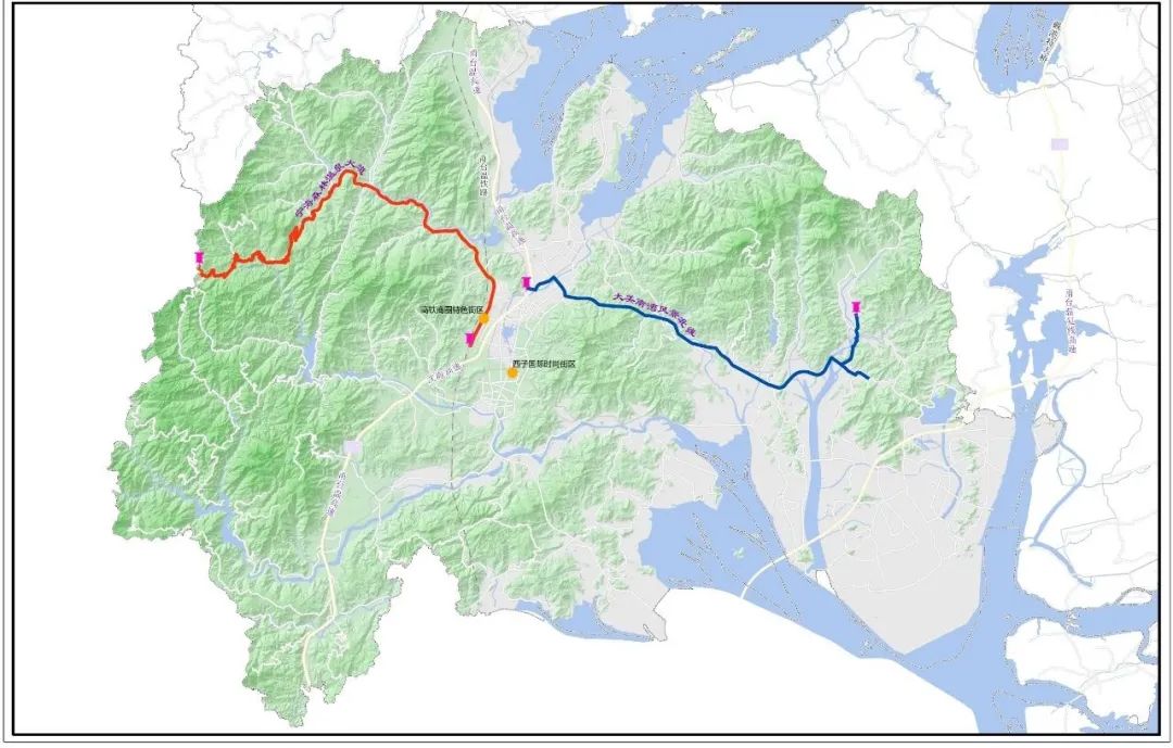 当前,宁海正在全面贯彻落实宁波市委市政府部署,提升打造两条横贯全域的精品线路、两个各具风格的特色街区,推进建设一批事关全局的重大项目。其中,宁海森林温泉大道,全长36.8公里,贯穿正在创建的森林温泉国家级旅游度假区;大美南湾风景北线,全长34公里,是浙江省精品示范道路;高铁站前特色街区正在打造城市TOD商圈;西子国际时尚街区是宁海的城市客厅、品质消费地标。