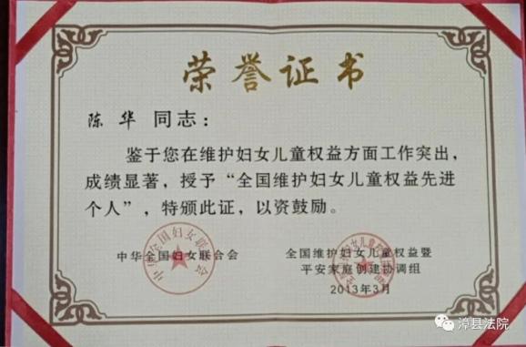 她办理的2000余件各类案件,均在法定期限内审结,案件调撤率达70%,达到了案结事了的目的。她先后获得全国维护妇女儿童权益先进个人、定西市陇原十佳女法官等多项荣誉称号。