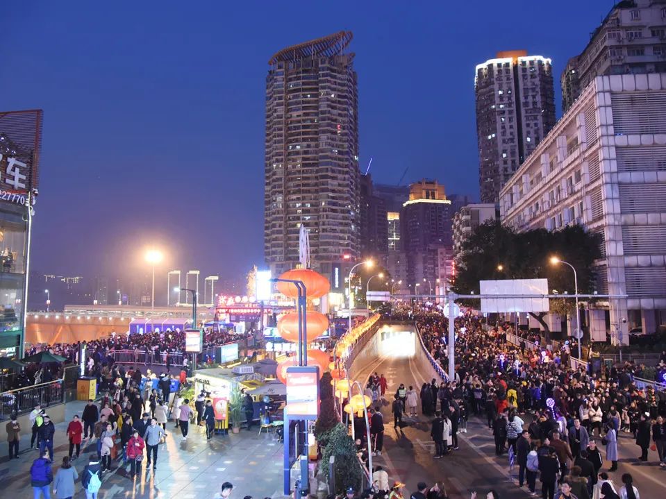 各大成熟景区的来客(本地人和外地游客)和2019年相比,人流量有所减少,比如洪崖洞景区2019年春节期间曾对千厮门大桥、沧白路等路段进行交通管制,临时改为步行通道,和周边城市支路共同构成单向步行环线,引导疏散;今年,千厮门大桥、沧白路等道路秩序井然,车辆正常行驶。解放碑的情况也类似。数据也有直观反映,根据重庆市文化和旅游发展委员会统计,全市235家开放的A级旅游景区共接待游客791万人次,为2019年同期的65.2%。