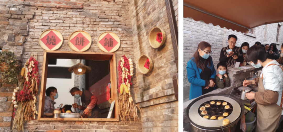 山城巷沿途小店多为餐饮业。大年初三,一家卖汤圆的小店生意异常火爆,不到18点就挂出了“售罄”的牌子;一家卖烧饼的小摊,老板做烧饼、捞烧饼的姿势也吸引了不少人“看希奇”(注:重庆方言,看新鲜);另一家卖“熨斗糕”(注:老重庆的路边摊美食)的小摊排起了长长的队伍,不少人八个十个地买,老板两口子忙得不亦乐乎。除了望山见水的美景可以记乡愁,还有儿时的味道可以忆乡愁啊!