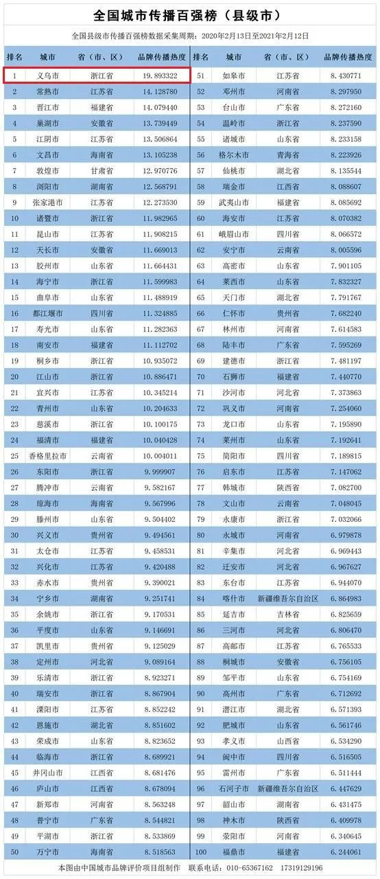 原标题:《义乌第一!全国县级市传播百强榜公布》